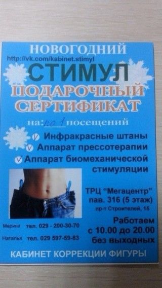 Обрести красивую и стройную фигуру это просто вместе с кабинетом коррекции фигуры СТИМУЛ! Дарите своим близким подарочные сертификаты!