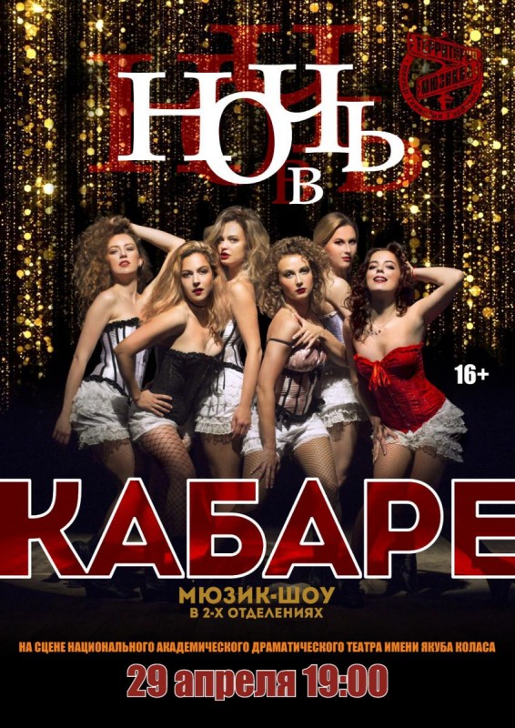 Вечер в стиле страсть и «тайные желания», возможность выпустить на волю чувства и получить великолепное настроение — вот, что такое мюзик-шоу «Ночь в кабаре» от театра «Территория мюзикла». Роскошные наряды, блеск и стразы, корсеты и боа — антураж в этот вечер не менее важен, чем музыка, которая будет звучать. Атмосферу ночного кабаре создадут хиты из мюзиклов, номера в стиле бурлеск и ваша готовность веселиться так, чтобы надолго запомнить этот вечер!