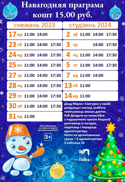 Бацькі, якія пажадаюць, каб гэты дзень для іх дзяцей стаў сапраўдным цудам, могуць прынесці з сабой падарункі (загадзя падпісаць, перадаць адміністратару). Дзед Мароз і Снягурка ў сваёй рэзідэнцыі ўважліва выслухаюць вершык ці песеньку вашага дзіцяці і ўручаць доўгачаканы прыз.