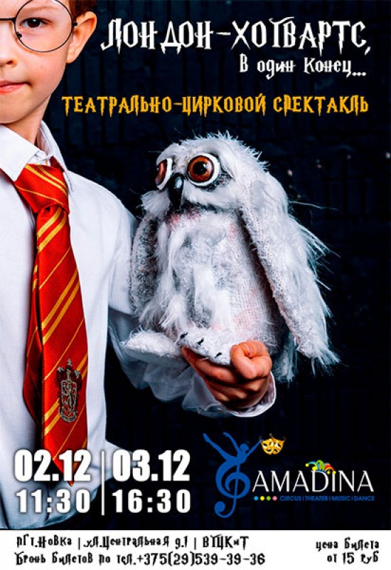 Театрально-цирковой спектакль "Лондон - Хогвартс, в один конец..."При участии Детская цирковая студия Амадина, которая вернёт нас в школу магии и волшебства Хогвартс.