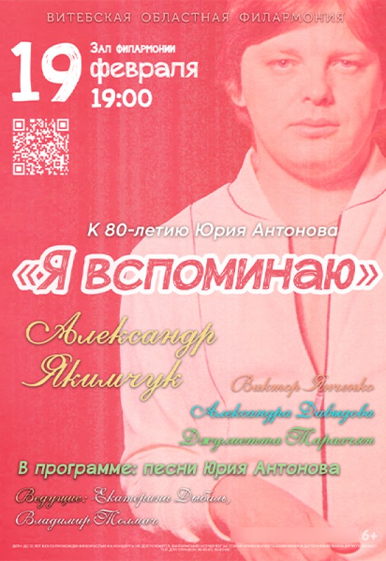 «Нет тебя прекрасней», «Я вспоминаю», «Гляжусь в тебя, как в зеркало», «Крыша дома твоего», «Белый теплоход», «Море, море…» Пожалуй, нет сегодня такого человека, которому были бы незнакомы эти песни. В них – безвозвратно ускользающий от нас сегодняшних, но такой восхитительно прекрасный и манящий мир романтики, красоты и любви. Эти песни, необыкновенно юные, несмотря на свой полувековой возраст, и сегодня звучат современно и пользуются популярностью у молодого поколения, а у старших вызывают чувство ностальгии по 80-м годам ушедшего XX века, когда их автор – молодой певец и композитор Юрий Антонов – переживал взлет творческой карьеры и пик славы.