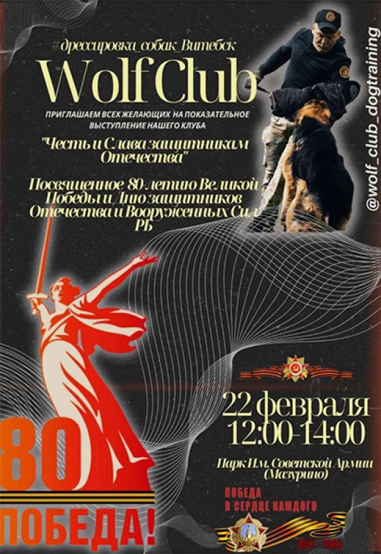 22 февраля с 12 до 14 праздничная программа, концерт, выставка вооружения и выступление охранных собак.
