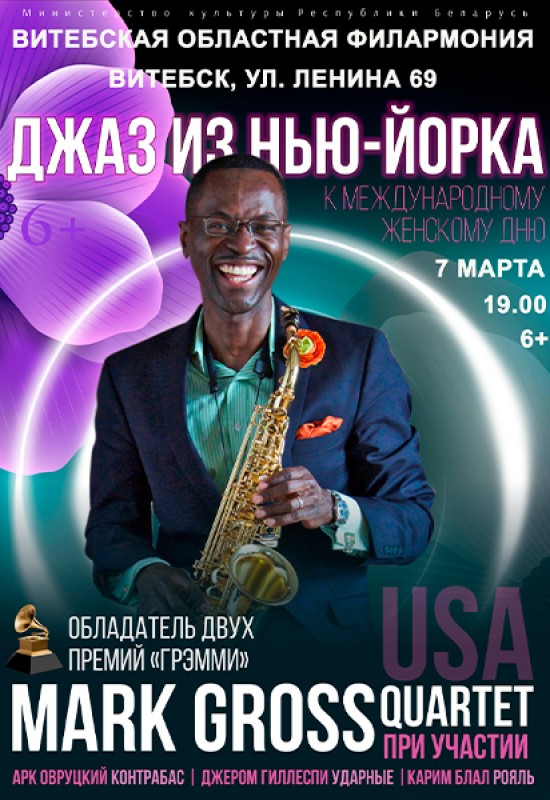 7 марта в Витебской областной филармонии – лучшие джазовые хиты к Международному женскому дню в исполнении Mark Gross Quartet!