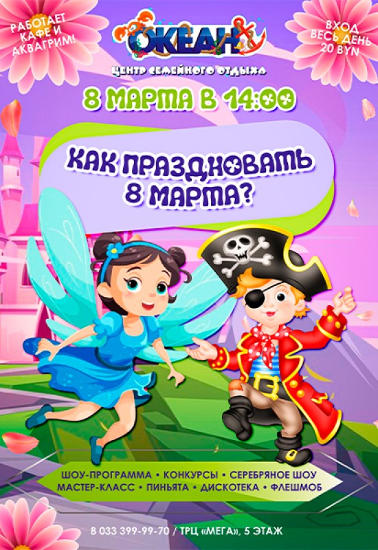 Приготовьтесь к невероятному приключению в нашем развлекательном центре! Фея и Пират объединяют свои силы, чтобы подарить вам самый волшебный и незабываемый праздник весны!