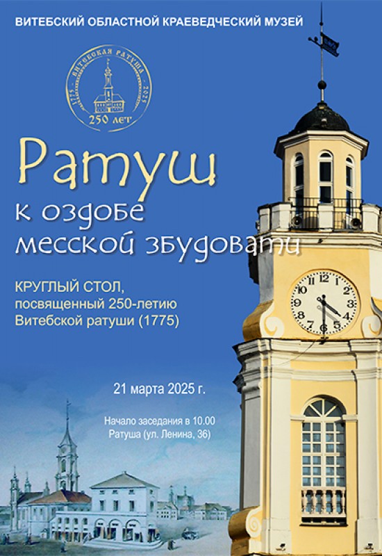 21 марта в Витебском областном краеведческом музее состоится круглый стол «Ратуш к оздобе месской збудовати», посвященный 250-летию Витебской ратуши (1775).