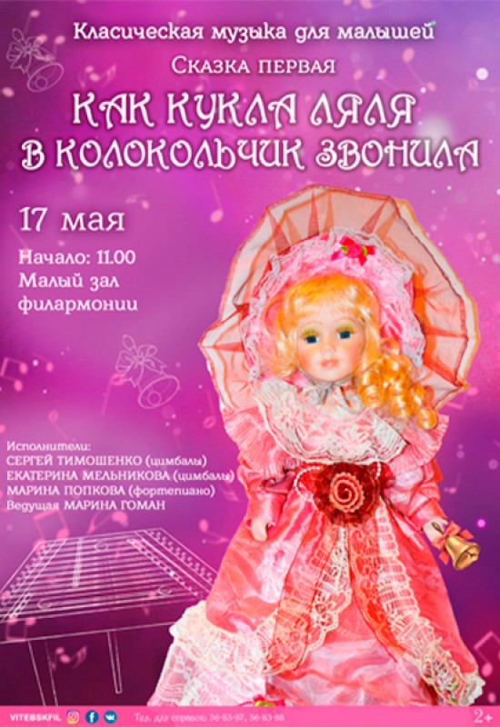 Цикл программ классической музыки для детей дошкольного возраста и их родителей «Сказки куклы Ляли» является смысловым продолжением музыкальных встреч для будущих мам «Соткать душу из нот». Маленькие зрители получают возможность услышать тембры различных музыкальных инструментов, поиграть на несложных шумовых и мелодических инструментах вместе с музыкантами, спеть. Музыкальное воспитание развивает в малыше способность слушать и слышать, чувствовать, двигаться, а главное – мыслить. Музыка открывает для маленького человечка мир новых образов и впечатлений.