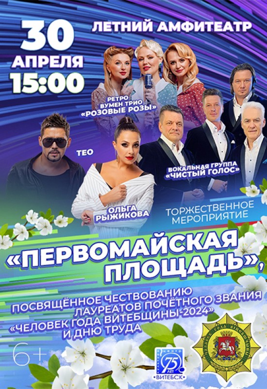 30 апреля в 15:00 в Летнем амфитеатре пройдёт торжественное мероприятие «Первомайская площадь». В его рамках состоится гала-концерт и чествование лауреатов почётного звания «ЧЕЛОВЕК ГОДА ВИТЕБЩИНЫ». Этот конкурс проводится среди жителей Придвинского края с целью стимулирования творческого труда, пропаганды инновационных идей, передового опыта. Имена лучших представителей различных сфер деятельности, внесших свой вклад в благополучие и развитие родного края будут названы в преддверии Дня труда.