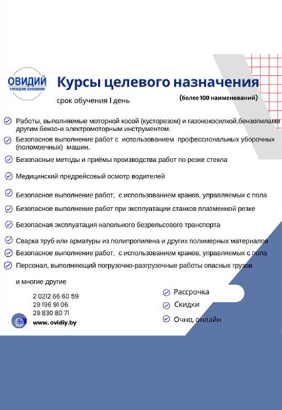 Обучение в Витебске. Курсы. Переподготовка