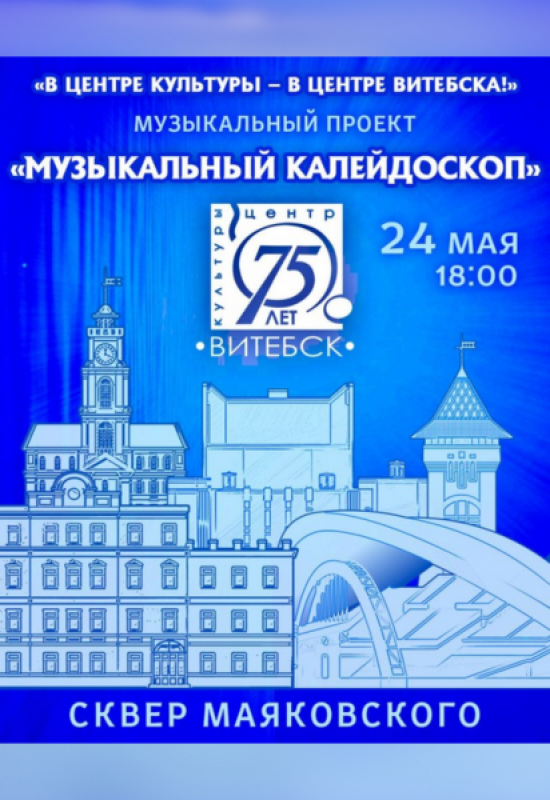 В предстоящую субботу, 24 мая, на нашем проекте «В ЦЕНТРЕ КУЛЬТУРЫ — В ЦЕНТРЕ ВИТЕБСКА» вас ожидает настоящий «МУЗЫКАЛЬНЫЙ КАЛЕЙДОСКОП»!
