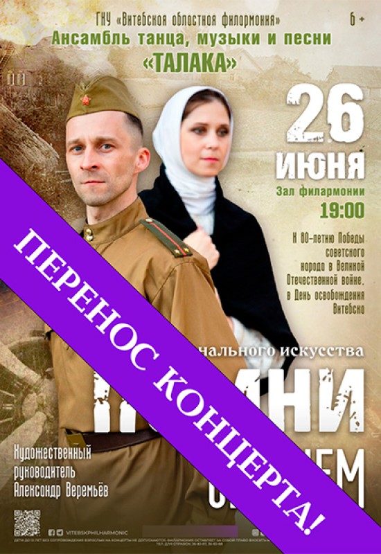 Ансамбль танца, музыки и песни "Талака" Витебской областной филармонии 26 мая представит театрализованную программу "Помни сердцем", приуроченную к 80-летию Победы советского народа в Великой Отечественной войне и ко Дню освобождения Витебска