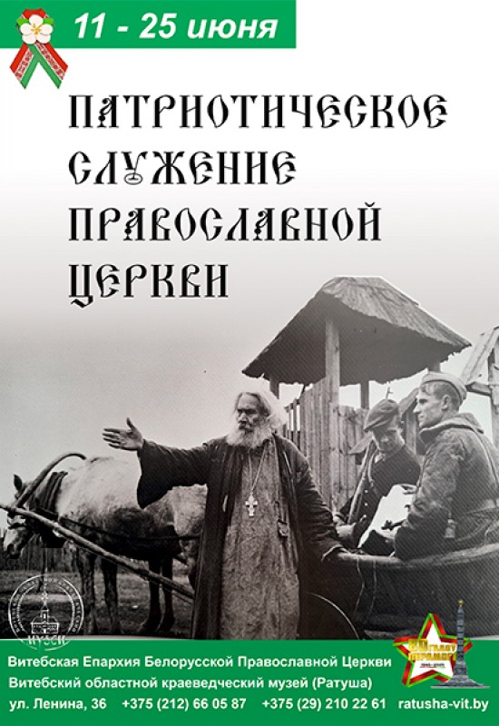 К 80-летию Великой Победы над немецко-фашистскими захватчиками в Витебском областном краеведческом музее (Ратуша, ул. Ленина, 36) проходит выставка, посвящённая патриотическому служению Православной Церкви в годы Великой Отечественной войны.