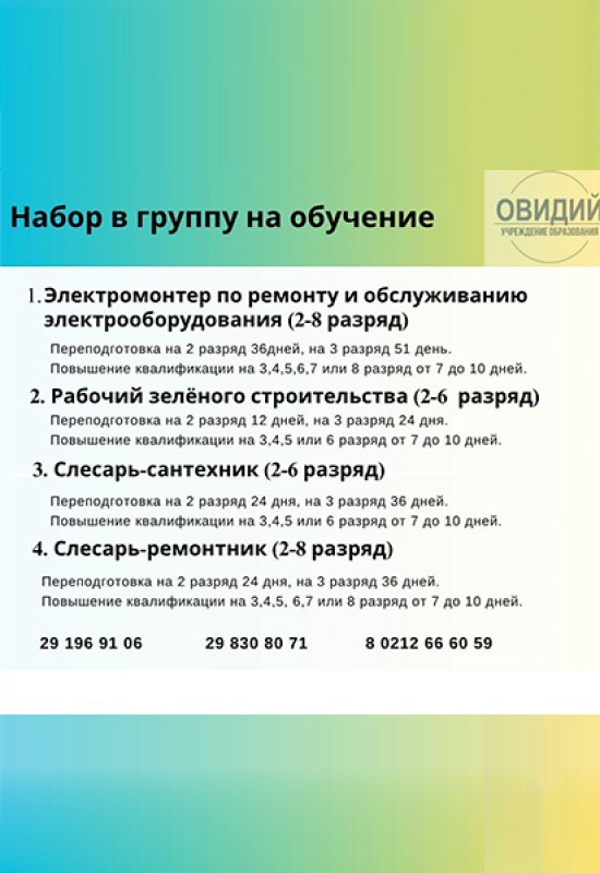 Повышение квалификации на 3,4,5 или 6 разряд от 7 до 10 дней.