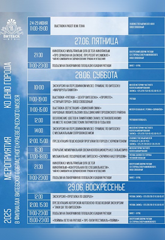 Мероприятия ко Дню города 2025 в филиалах Витебского Областного Краеведческого Музея.