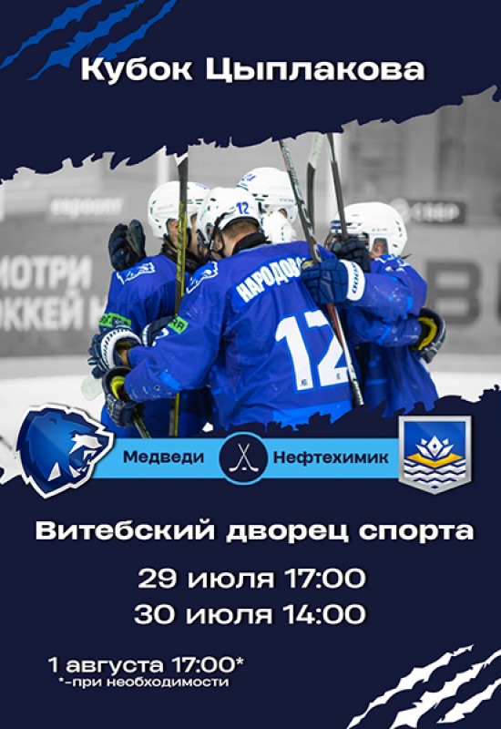 Знакомимся с расписанием Кубка Владимира Цыплакова!«Медведи» сразятся с новополоцким «Нефтехимиком»!Матчи пройдут в Витебском Дворце спорта.