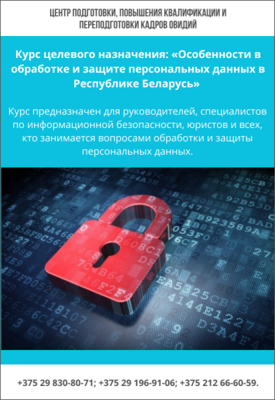 Обеспечение безопасности персональных данных — важная составляющая современной деятельности любой организации. Наш специализированный курс поможет вам овладеть необходимыми знаниями и навыками для правильной обработки и защиты информации в соответствии с законодательством Республики Беларусь.