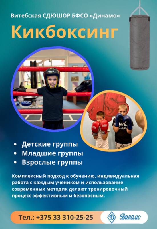 Кикбоксинг для взрослых и детей с 4-х лет в Витебской СДЮШОР БФСО «Динамо».