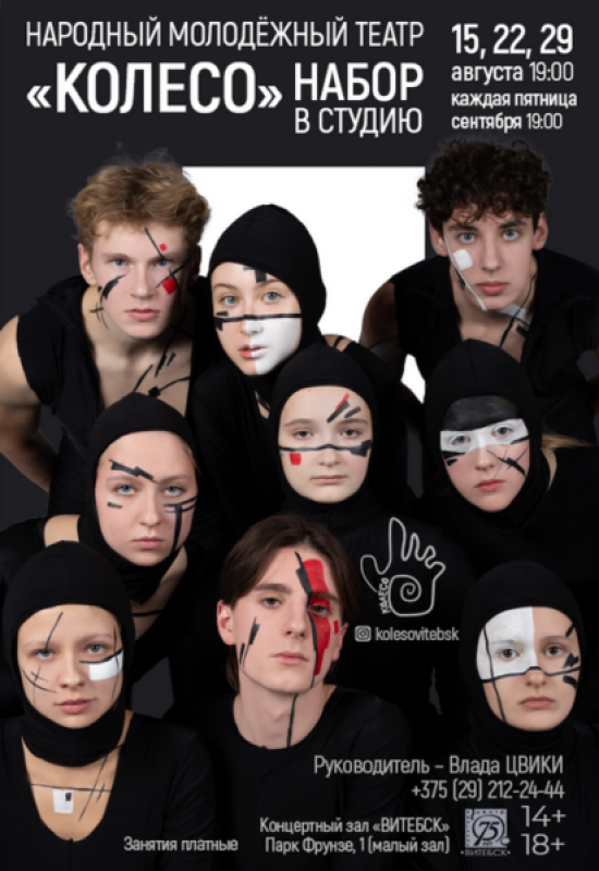 Студия молодёжного театра «КОЛЕСО» приглашает всех желающих 14+, 18+ (две группы).