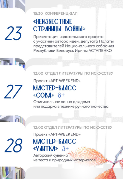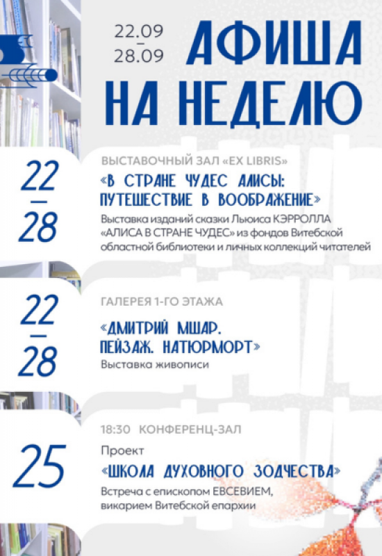 Проекты Витебской областной библиотеки с 22 по 28 сентября.