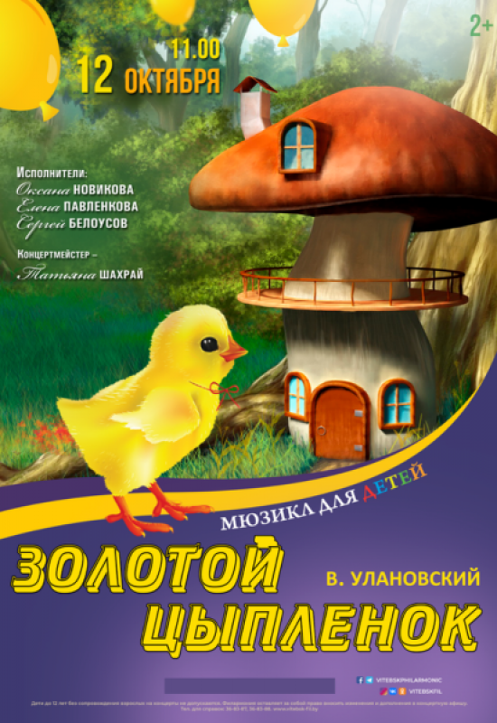 Музыкальная сказка «Золотой цыпленок» адресована маленьким зрителям, только начинающим приобщаться к искусству. Это добрая и простая история о доверчивом маленьком цыпленке Пете, которого хочет обмануть хитрая Лиса, превратив его в наседку, несущую золотые яйца. Но коварным планам хищницы не суждено осуществиться, ведь у маленького Пети есть защитник - его любящий «папочка» - самый добрый, умный, сильный и совсем не страшный серый Волк!