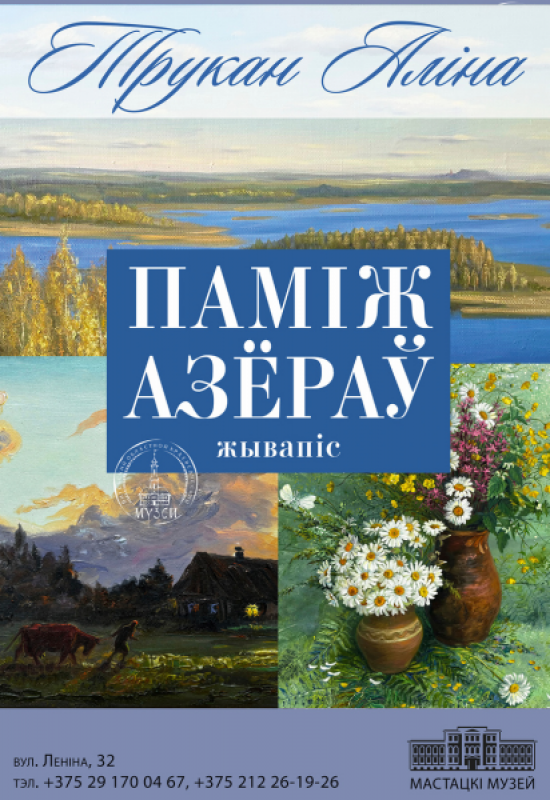 Выставка живописи Алины Леонардовны Трукан «ПАМІЖ АЗЁРАЎ / МЕЖДУ ОЗЁР» организована к 60-летию автора и согласуется с общей тематикой 2025 года как года Благоустройства. Жанровый диапазон художницы достаточно широк: лирические пейзажи, портреты, натюрморты. В 2021 году Алина Леонардовна представляла в Художественном музее персональную выставку «Крылы натхнення», была участницей выставок в рамках проекта «Витебский художник» УК «ВОКМ».