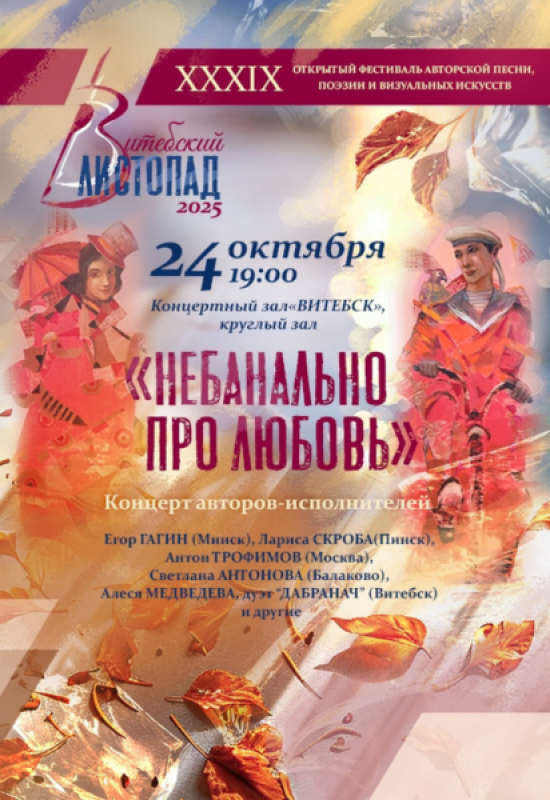 Музыканты поделятся своими песнями о любви в её различных проявлениях: нежная и трогательная, весёлая и искренняя, смехотворная и загадочная... И уж точно не банальная. Это будет музыкальный диалог с сердцем, где каждая композиция станет полотном чувств, сотканным из тончайших нитей эмоций.