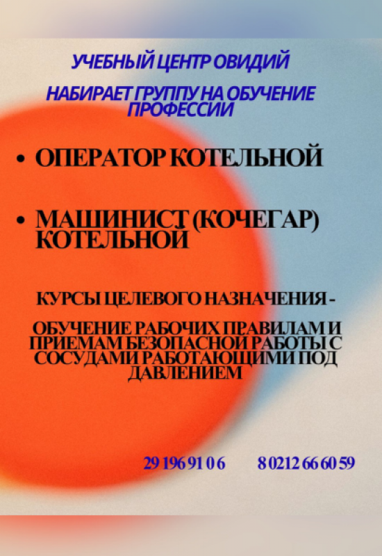 Курсы целевого назначения - обучение рабочих правилам и приёмам безопасной работы с сосудами работающими под давлением.