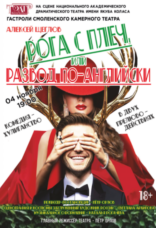 Чем завершилось столь хитроумно задуманное предприятие, удалось ли доверенному лицу Батлера поколебать устои семейного благополучия босса и кому в конце концов достался Роллс-Ройс, зритель узнает из новой комедии Смоленского камерного театра «Рога с плеч, или Развод по-английски».