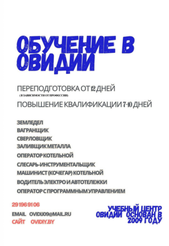 Переподготовка от 2 дней (в зависимости от профессии) повышение квалификации 7-10 дней.