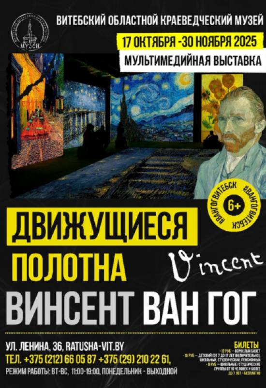 Впервые в Витебске в Витебском областном краеведческом музее будет работать уникальный мультимедийный проект «Винсент Ван Гог. Движущиеся полотна».
