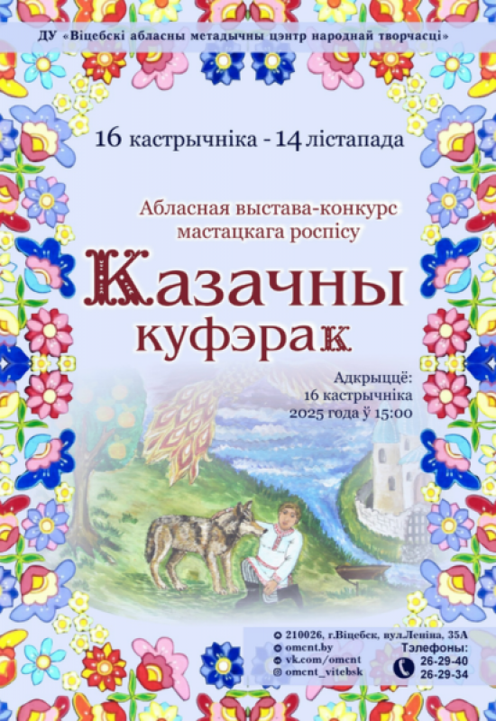 С 16 октября по 14 ноября 2025 года в выставочном зале Государственного учреждения ”Витебский областной методический центр народного творчества“ пройдет областная выставка-конкурс художественной росписи ”сказочный сундучок“.