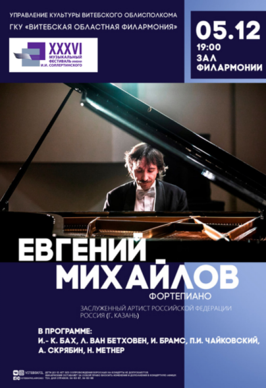 В программе: И.-К. Бах, Л. ван Бетховен, И. Брамс, П.И. Чайковский, А. Скрябин, Н. Метнер