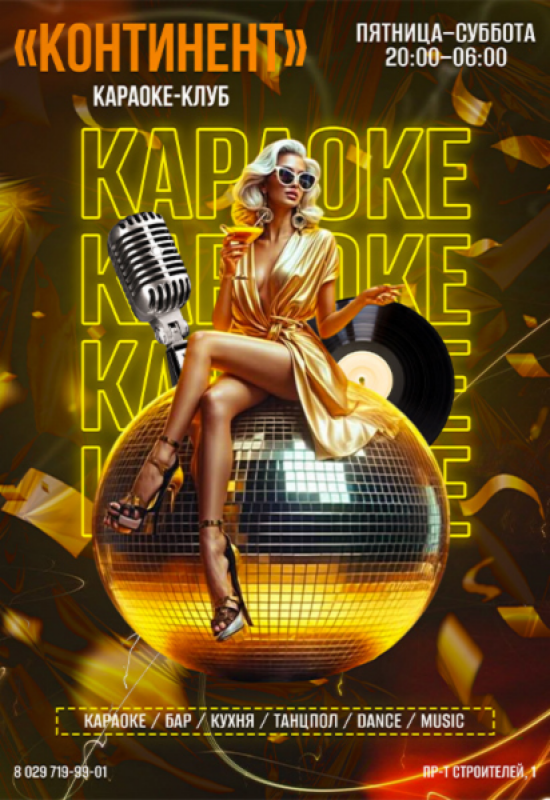 В нашем караоке-клубе «Континент» каждую пятницу и субботу — настоящий праздник стиля, вкусной еды, напитков и музыки!