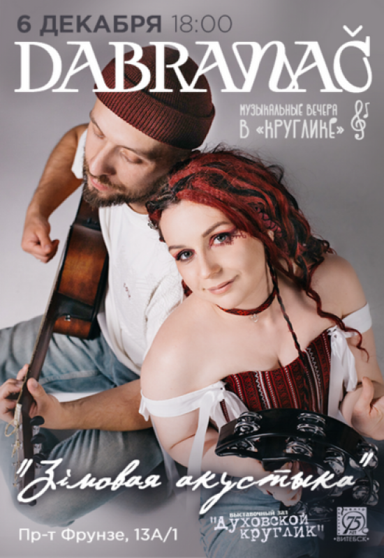 Выставочный зал «Духовской Круглик» приглашает жителей города 6 декабря, в 18:00 провести по-настоящему особенный вечер в чудесной атмосфере зимней музыки белорусского инди-фолк дуэта «Дабранач».