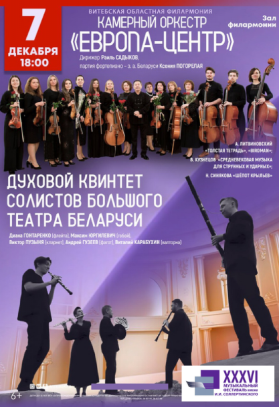 Александр Литвиновский. «Birdman» (Сюита для камерного оркестра в 11 частях) / Духовой квинтет солистов Большого театра Беларуси, Камерный оркестр «Европа-Центр», партия фортепиано – Ксения Погорелая, дирижер Раиль Садыков.
