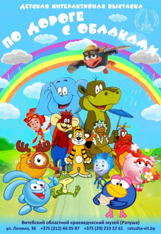 Витебский областной краеведческий музей предлагает вам оказаться в мире ваших детских впечатлений, вспомнить прежних друзей и подружиться с новыми. На выставке «По дороге с облаками» вы можете вновь почувствовать себя ребенком – посидеть за рулем автомобиля, собранного двумя маленькими мастерами из Солнечного города – Винтиком и Шпунтиком. У вас есть возможность поиграть вместе с героями мультфильмов и сказок в самые разные и занимательные игры. Вы можете оказаться в бумажном мире, где вас встретят их обитатели – лось Аристотель и дятел Тюк-Тюк, прогуляться по непроходимым джунглям, а потом, лишь перейдя дорогу, оказаться «у самого синего моря», где вот уже долгое время стоит «ветхая землянка» со сварливой старухой, а старик всё так же тянет свой невод.