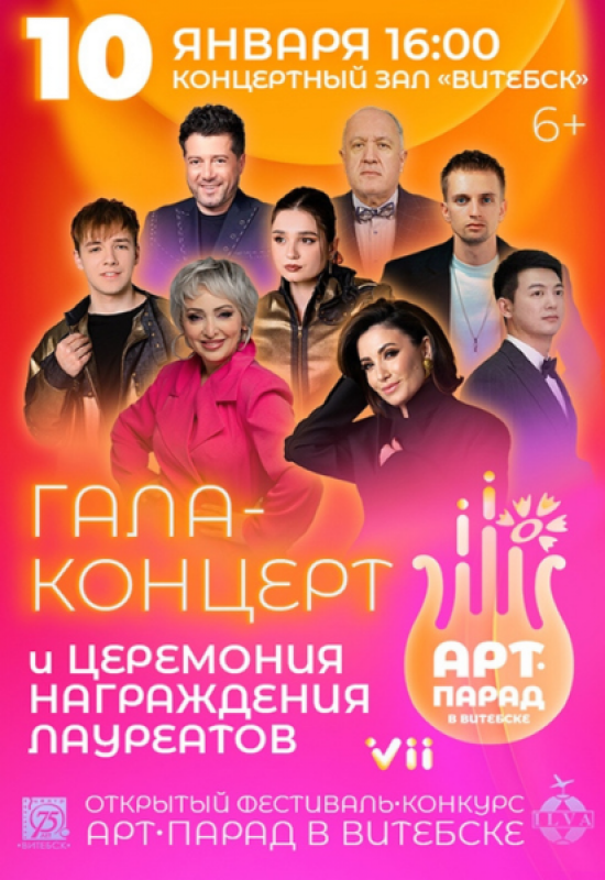 10 января 2026 года в 16:00 на сцене концертного зала «Витебск» состоится звёздный финал VII Открытого фестиваля-конкурса «АРТ-Парад в Витебске». В этот вечер будут объявлены имена победителей, чьей наградой станет уникальный шанс – специальное приглашение выступить на юбилейном ХХХV Международном фестивале искусств «Славянский базар в Витебске».