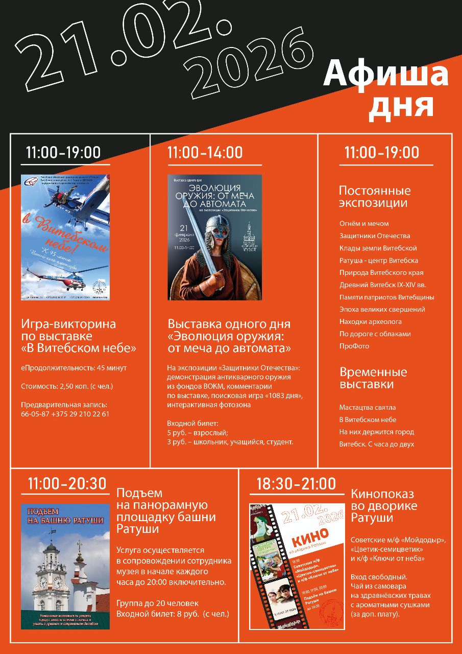 11:00-20:00 — подъём на панорамную площадку Ратуша в начале каждого часа (последний в 20:00).