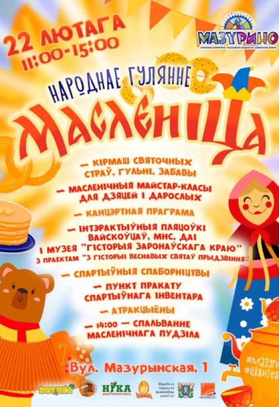 22 лютага Комплекс культурна-масавага адпачынку імя Савецкай Арміі праводзіць традыцыйнае гарадское гулянне, прысвечаныя развітанню з зімой. Сёлета арганізатары падрыхтавалі не толькі знаёмыя і любімыя забавы, але і нечаканыя сюрпрызы.
