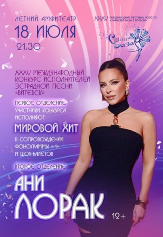 Второе отделение концерта – это подарок для всех поклонников большой сцены. Ярчайшая звезда, обладательница уникального голоса, известная своей мощной энергетикой – Ани ЛОРАК. Её выступление на XXXV Международном фестивале искусств «СЛАВЯНСКИЙ БАЗАР В ВИТЕБСКЕ» – одновременно и школа мастерства для молодых конкурсантов, и прекрасные эмоции для зрителей.