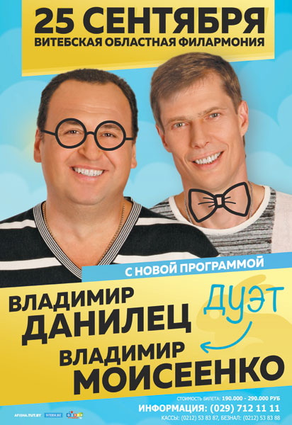 Вот уже более 25 лет миниатюры и скетчи народных артистов Украины Владимира Данильца и Владимира Моисеенко взрывают аплодисментами зрительные залы, а телевизионные герои снискали любовь миллионов поклонников их юмористического таланта.