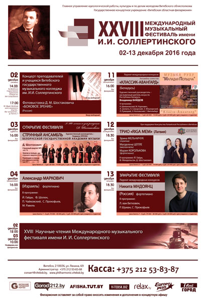 Александр МАРКОВИЧ окончил Московскую консерваторию по специальностям фортепиано и дирижирование. В 1990 году эмигрировал в Израиль. Александр Маркович работал с такими выдающимися музыкантами, как В. Репин, М. Венгеров, С. Накоряков, И. Гендель, Ж. Коссе и т.д. Выступал в престижных концертных залах Вигмор-холл (Лондон), Карнеги-холл (Нью-Йорк), в Берлинской филармонии, Гейхал ха-Тарбут (Тель-Авив), Сантори-холл (Токио) и в Театре на Елисейских полях (Париже).