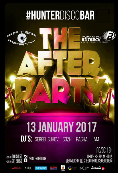 "THE AFTER PARTY" совместно с "РАДИО ВИТЕБСК" и программой "AfterParty"! Мы погрузимся в мир клубной музыки всех направлений, которая выходит на волнах "Радио Витебск" 91,2 FM вместе с лучшими ее резидентами: