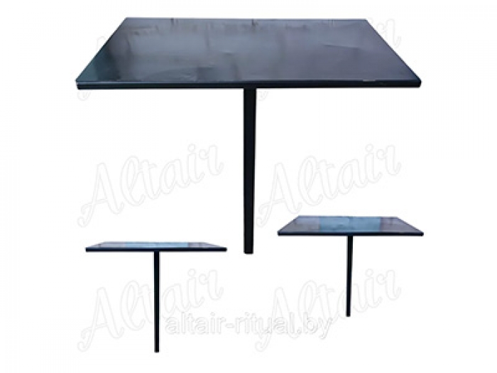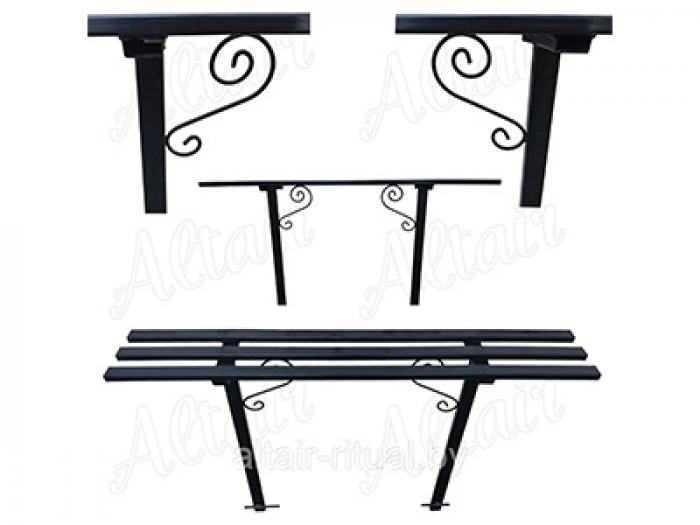 Стол на кладбище  изготавливается из металлических профилей. Металлический стол загрунтован и окрашен в черный цвет. Стол на кладбище можно изготовить согласно индивидуальным размерам заказчика.