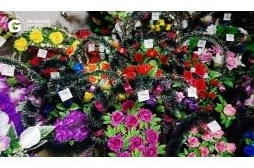 Более 100 видов венков, около 40 видов корзин, варианты гробов, разнообразие цветов и другие ритуальные принадлежности в одном месте.