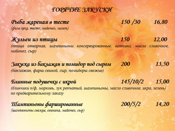 МЕНЮ (будьте внимательны, цены указаны в декабре 2024 г.)