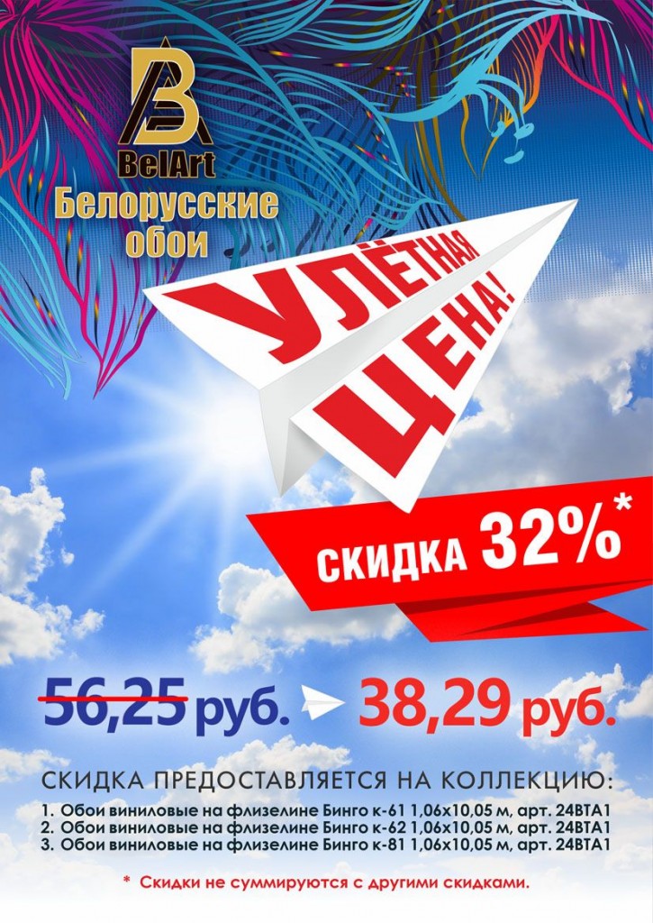 Только сейчас у вас есть уникальная возможность приобрести обои со скидкой 32%!