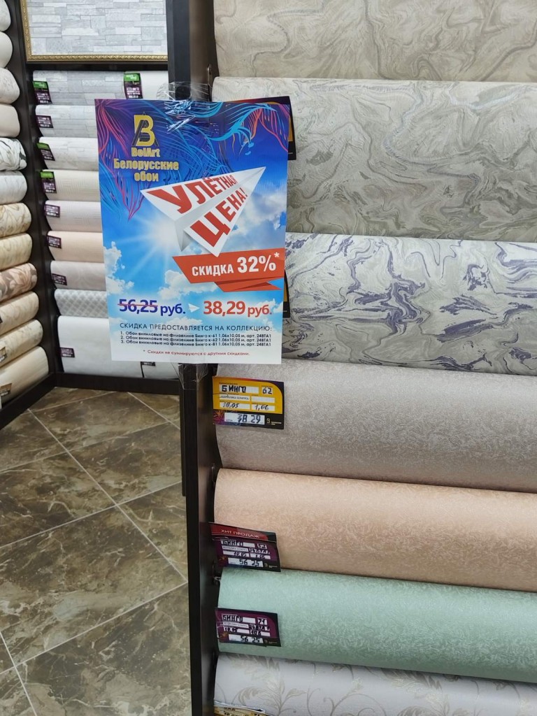 В нашем магазине действуют специальные скидки, акции и распродажи на широкий ассортимент обоев.