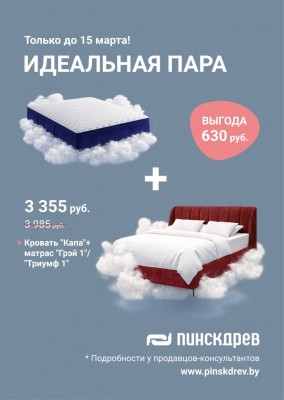 С 12 февраля по 15 марта действует специальное предложение: при покупке кровати и матраса комплектом вы получаете готовое решение для комфортного сна по выгодной цене.