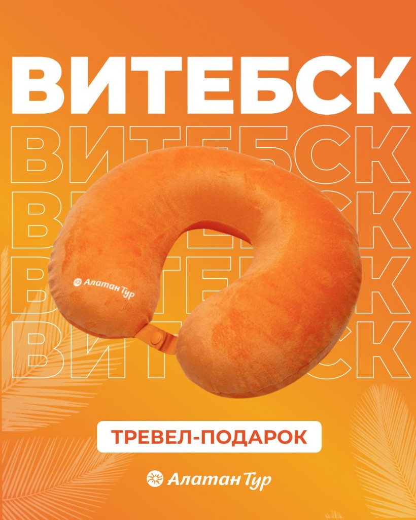 Только с 1 августа по 31 августа при покупке авиатура на отдых вы получаете подарок - стильную оранжевую тревел-подушку с эффектом памяти!