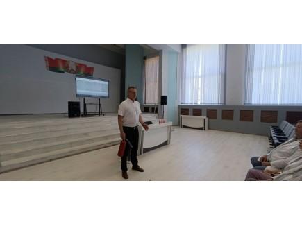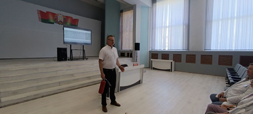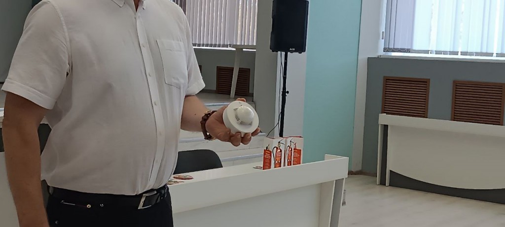 Председатель Витебского отделения добровольного пожарного общества напомнил присутствующим основные действия при использовании огнетушителя, подробно рассказал о принципе работы автономного пожарного извещателя и светозвукового оповещающего устройства. Особое внимание было уделено важности своевременного реагирования на сигналы пожарной безопасности.
